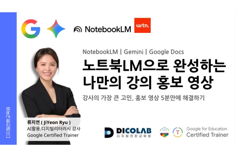 구글공인트레이너 류지연 작가는 11월 15일(토)부터 21일(금)까지 온라인 플랫폼 Zoom을 통해 ‘노트북 LM으로 5분만에 홍보 영상 제작’ 연수를 개최했다. 본 연수는 노트북 LM(Notebook LM)이라는 AI 도구를 활용해 짧은 시간 내에 영상 콘텐츠를 제작하는 실전 중심의 과정으로, 강사 및 교육 전문가들이 디지털 전환 시대에 자신만의 홍보 영상 역량을 확보하도록 설계됐다.