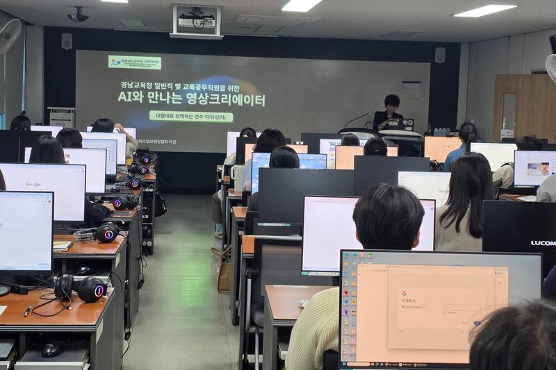 경상남도교육청은 지난 6일 교육연수원에서 공무직 직원을 대상으로 ‘AI와 만나는 영상크리에이터’ 연수를 운영했다. 이번 교육은 공공기관 실무자의 AI 활용 능력을 높이기 위해 마련됐으며, 이진 강사가 생성형 AI 기초부터 영상 제작·편집까지 실습 중심으로 진행했다.