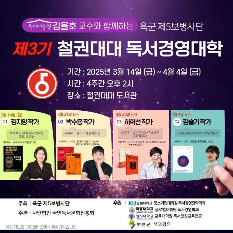 제3기 철권대대 독서경영대학 강사진 포스터 (사진 = 이혜정 기자)