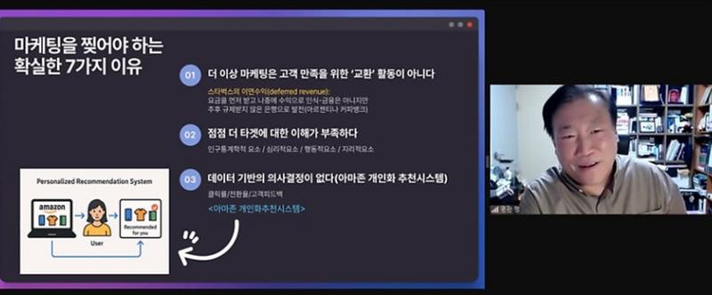 맹명관 교수가 로젠탈 콘텐츠랩 주최 온라인 특강에서 강연하고 있다.