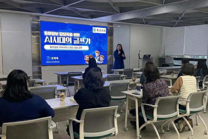 동아일보 지식서비스센터는 지난 27일 서울 충정로 사옥에서 ‘AI 시대의 글쓰기’를 주제로 사내 강연을 개최했다. 강연은 한국AI문해교육원 조재옥 강사가 진행했으며, 생성형 AI 확산 속에서 변화하는 글쓰기 방식과 조직 실무자가 갖춰야 할 문해력, AI 활용 전략을 중심으로 이루어졌다. 이번 강연은 회사가 보유한 기록물과 기사 아카이브를 내부 콘텐츠 자산으로 더욱 효과적으로 활용하기 위한 역량 강화 차원에서 마련됐다.