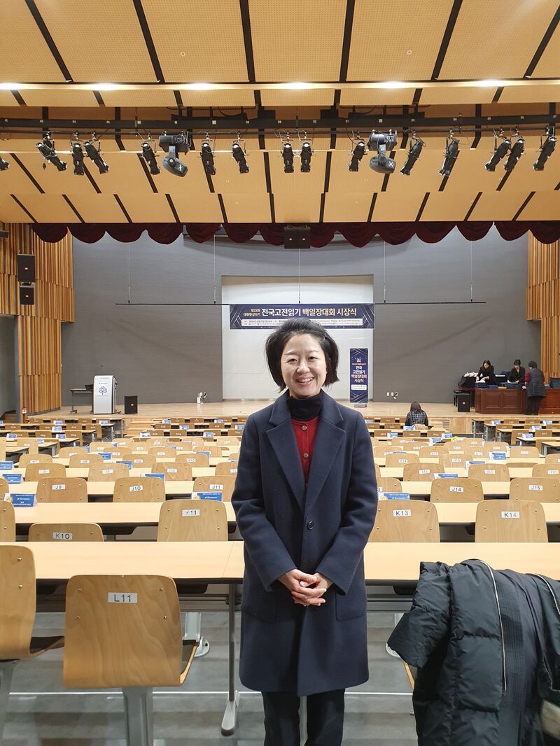 아이들이 책으로 걸어온 길을 함께 축하하기 위해, 늘 한 발 먼저 도착한다. 독서대회 시상식에서 아이들을 따뜻한 마음으로 맞이하는 이연주 분회장의 모습이다. 사진=이연주 분회장 제공