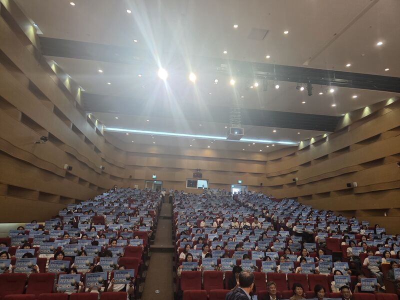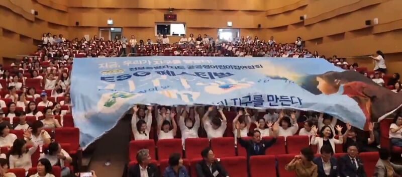 교사들의 ESG 실천 영상 ‘우리들의 다짐’이 상영될 때는 장내가 숙연해졌다. 영상을 지켜보던 교사들의 눈가에는 뭉클한 눈물이 맺혔다. 영상이 끝나자 모두가 자리에서 일어나 “지금, 우리가 지구를 말한다! 지구Talk 시작!”을 외치며 하나의 울림으로 호응했다.