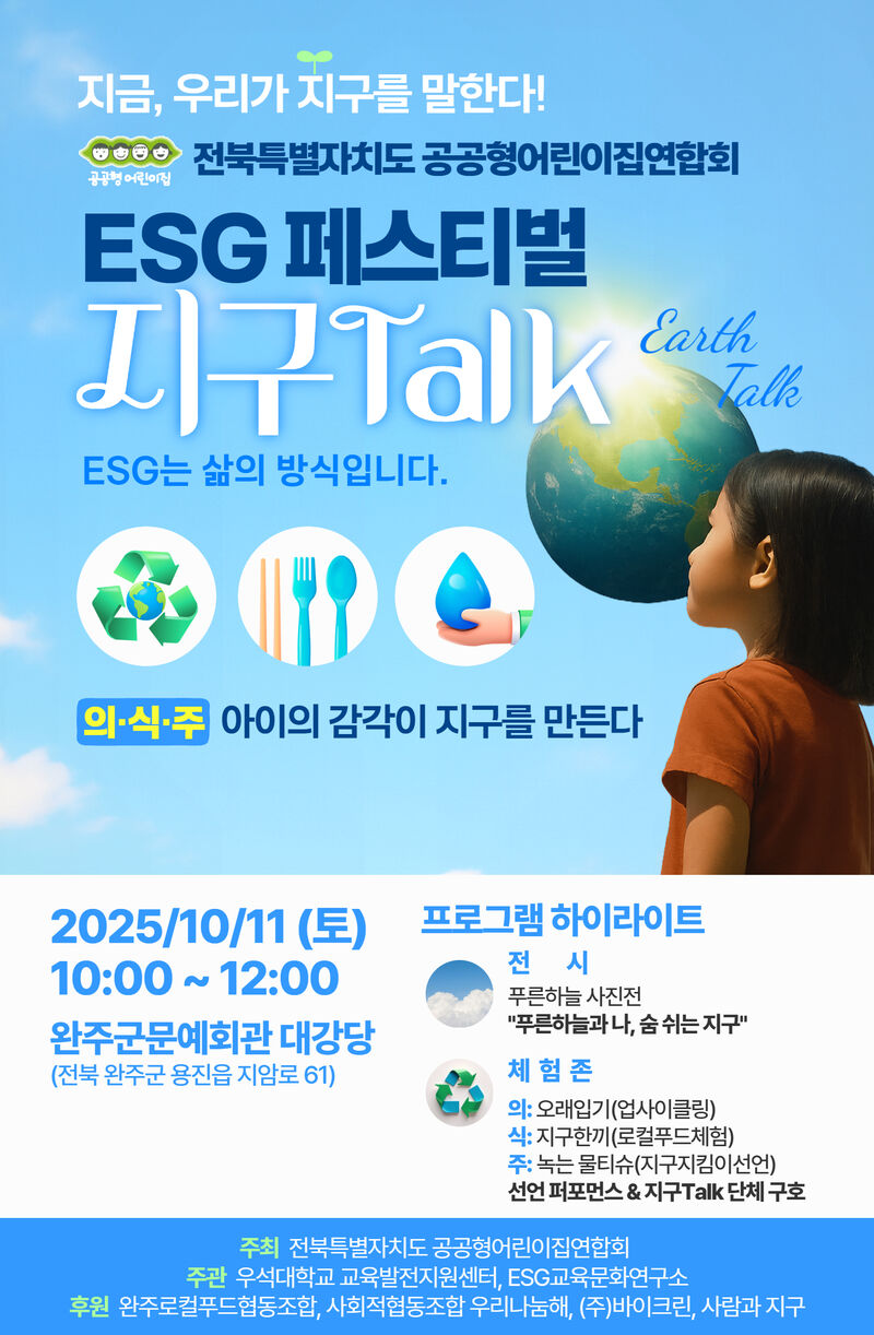 행사명: 전북특별자치도 공공형어린이집연합회 ESG 페스티벌 ‘지구Talk(Earth Talk)’