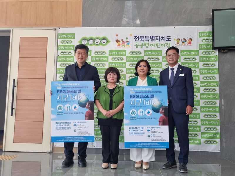 전북특별자치도 공공형어린이집연합회(회장 송정임)가 주최한 『ESG 페스티벌 지구Talk(Earth Talk)』가 700여 명의 교사와 내빈이 참석한 가운데 성황리에 열렸다. 이번 행사는 “ESG는 삶의 방식입니다 ― 의·식·주, 아이의 감각이 지구를 만든다.”를 주제로, 아이의 감각과 교사의 실천이 세상을 바꾼다는 울림을 전했다.